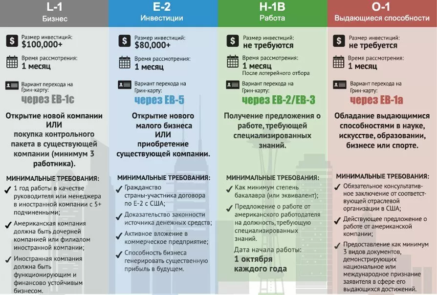 США предлагает десятки рабочих виз, но 95% людей подходят под четыре категории.